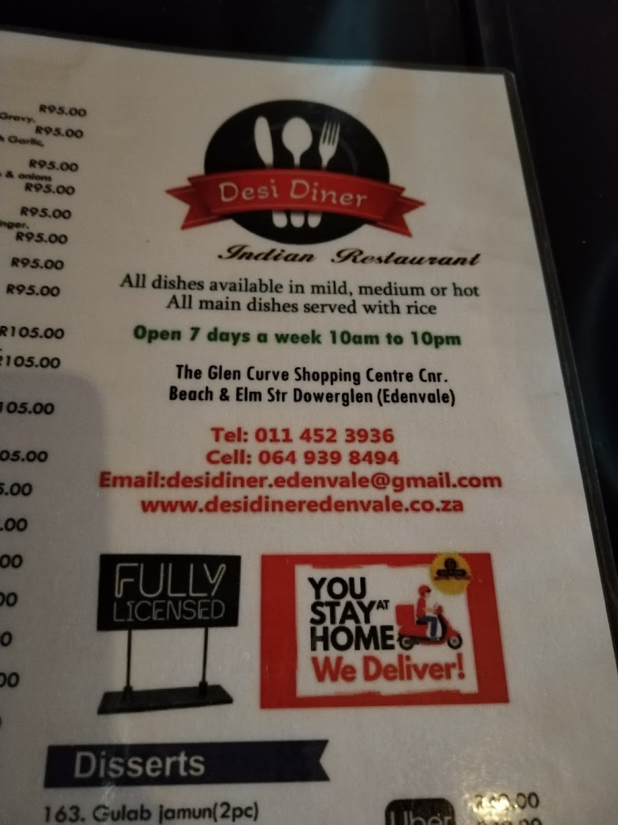 Welcome to Desi Diner Edenvale, your go-to Indian culinary spot nestled at the corner of Beech and Elm Streets in Dowerglen, Edenvale. Known for its delectable offerings and vibrant flavors, this charming eatery stands out in the local dining scene.